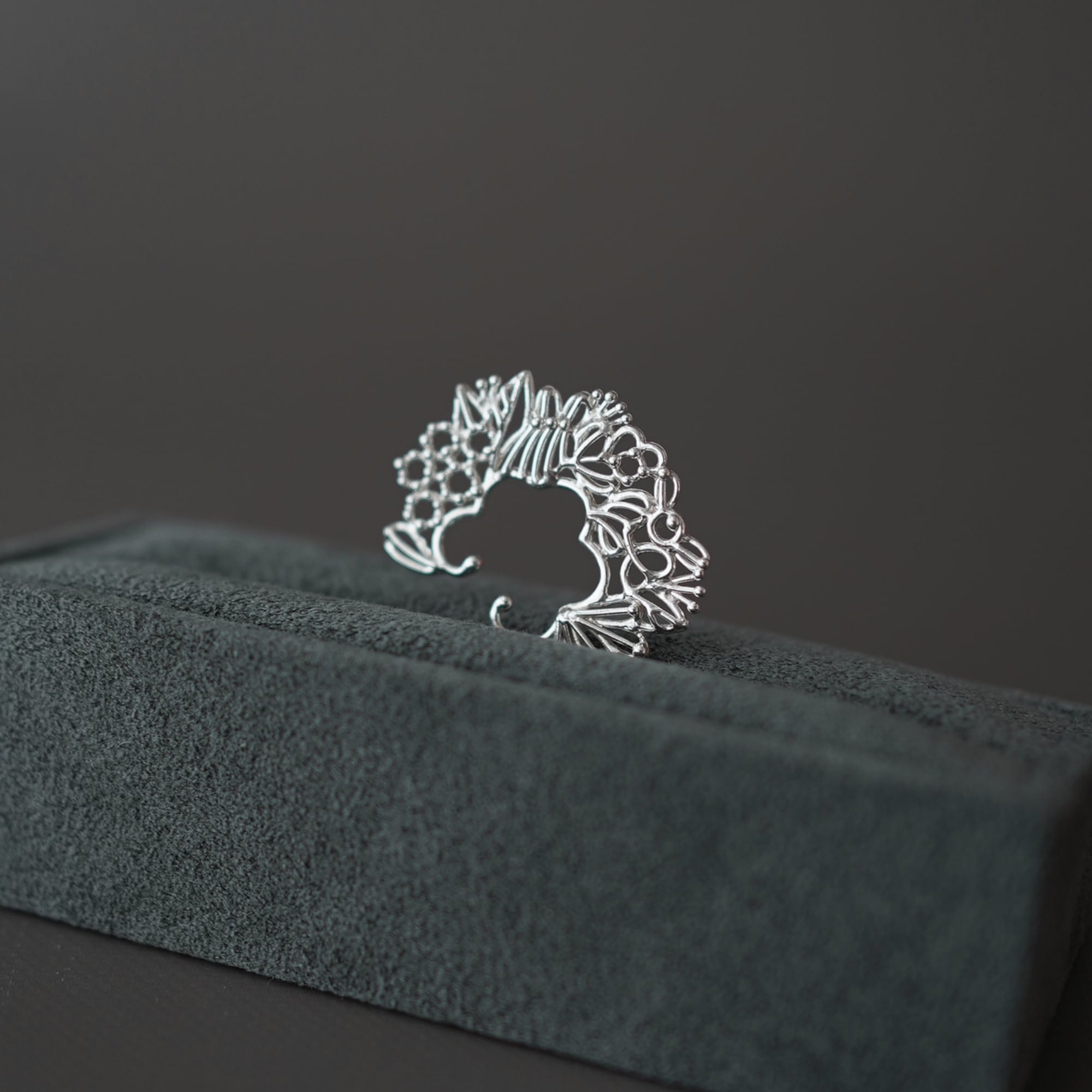 凸面だけを研磨剤入りのジュエリークロスで磨いて明度差を出して経年変化を楽しむのも良し。