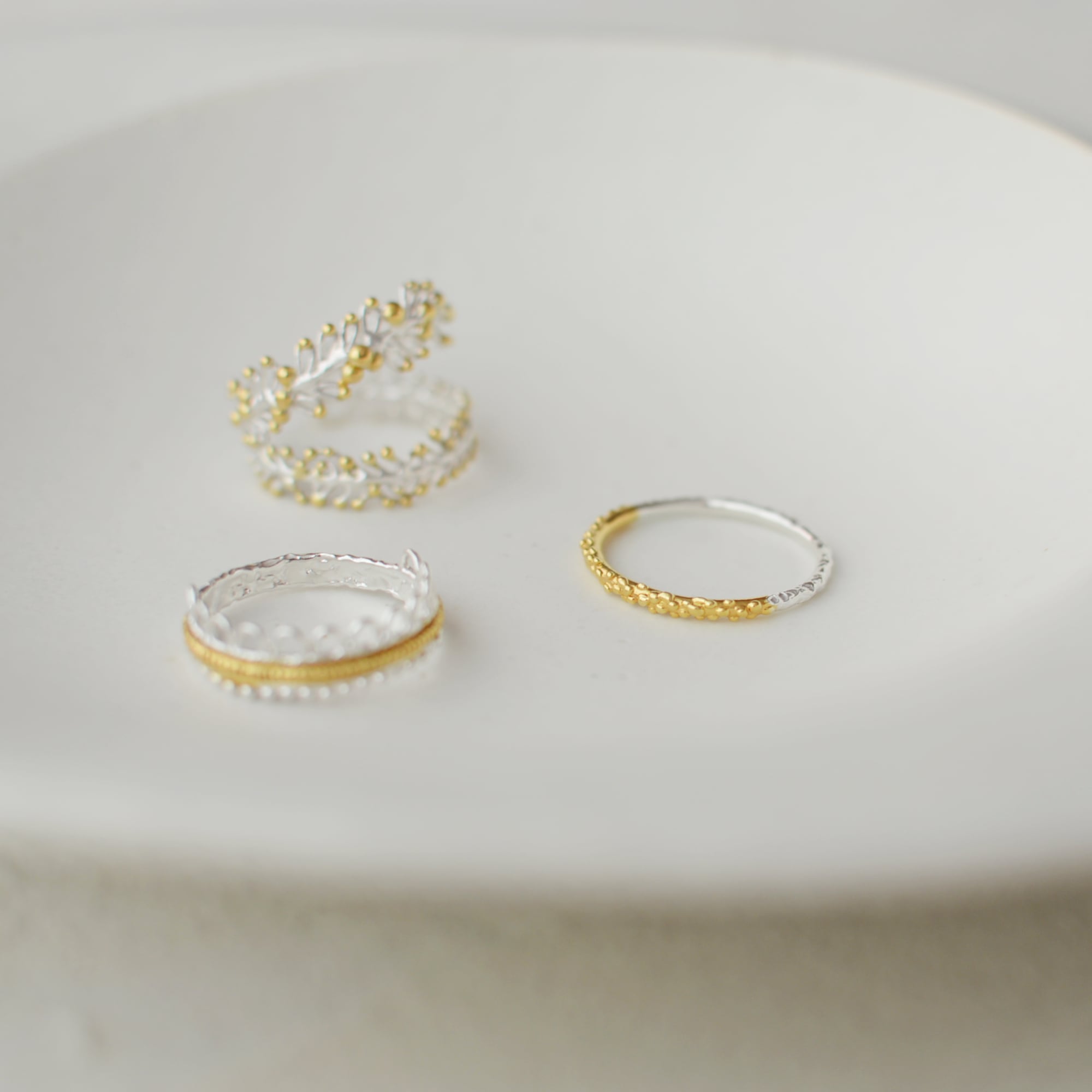 ゴールド面には小さなドットを、シルバー面はテクスチャーを施しています。
