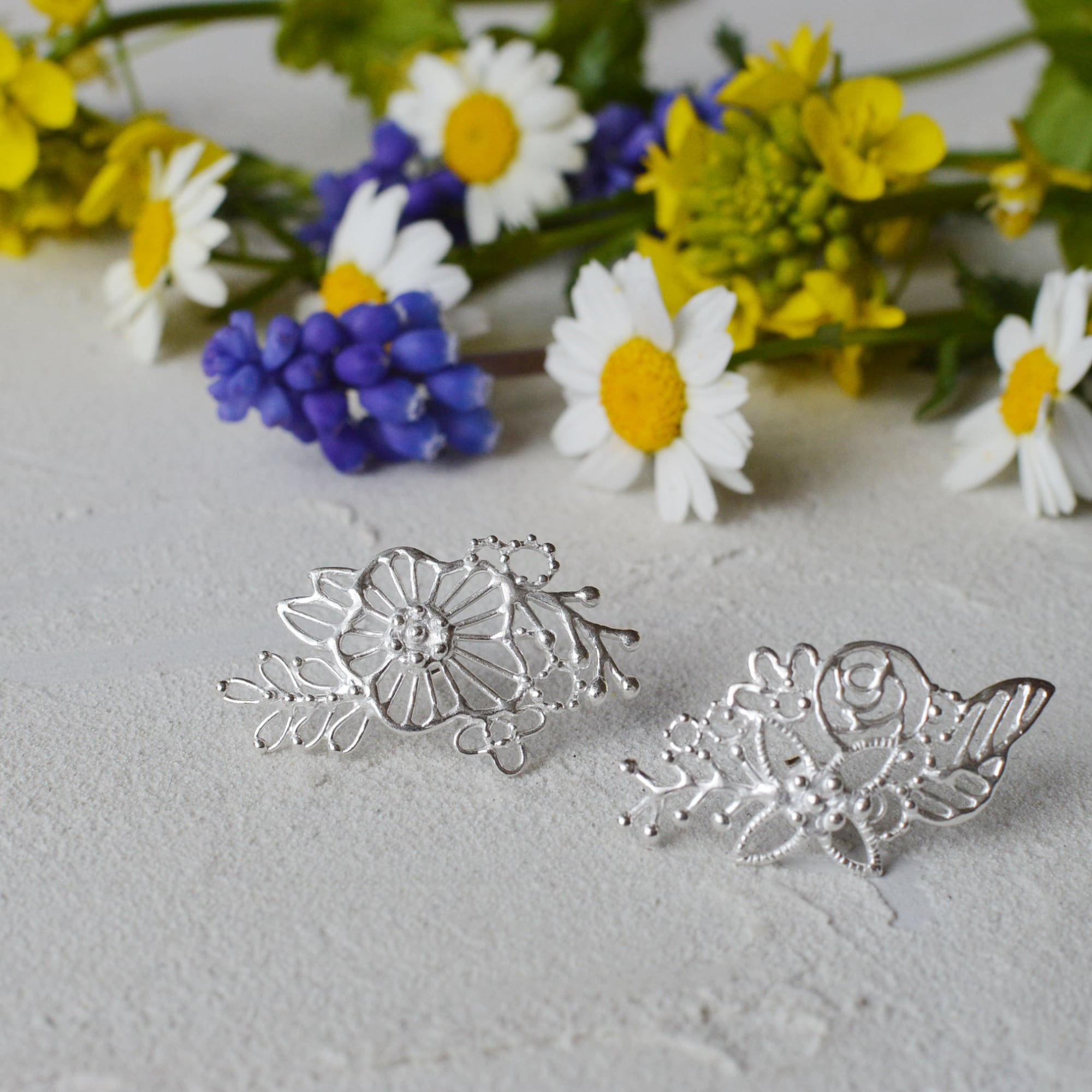 左右でお花モチーフが異なるアシンメトリーデザイン