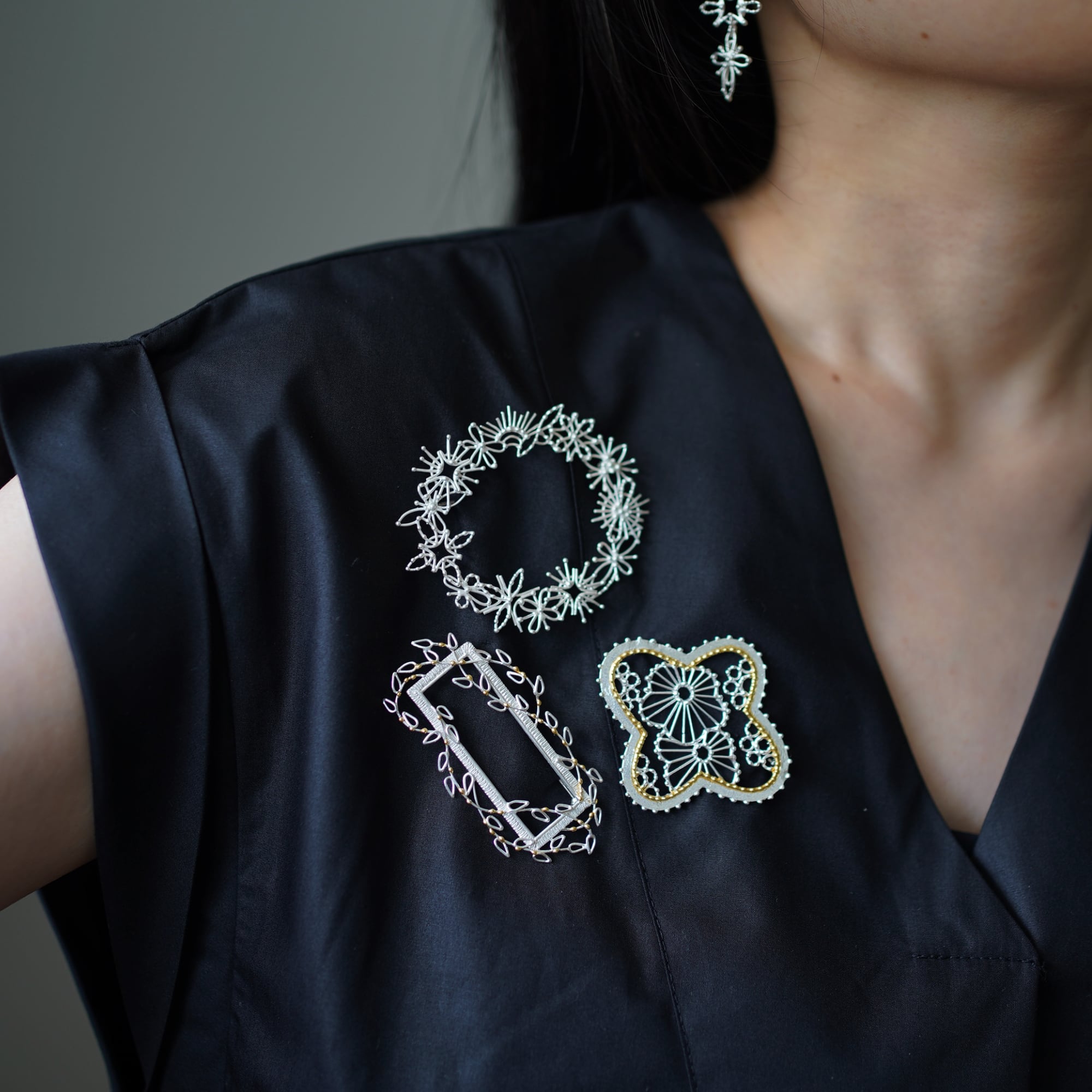 ブローチのフォルムからも花を連想させます。
