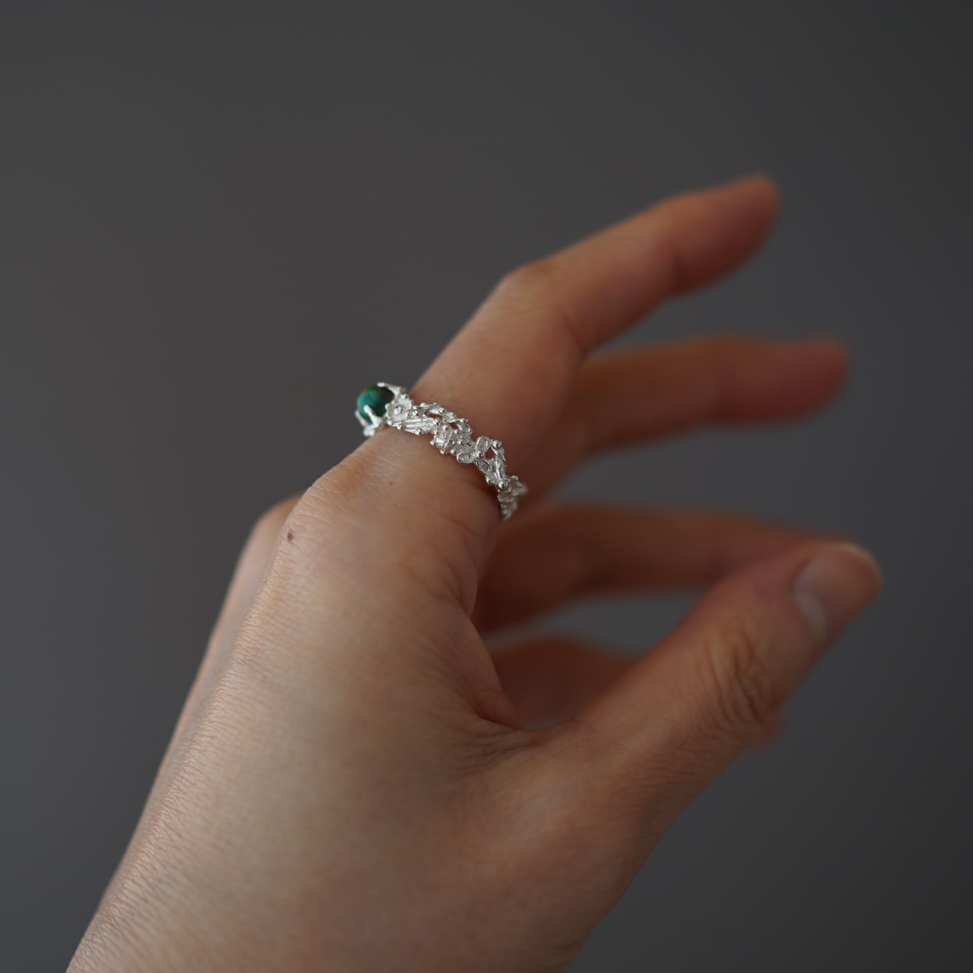 ぐるっとモチーフで構成されたアーム、そしてその中心に天然石が石留めされています。