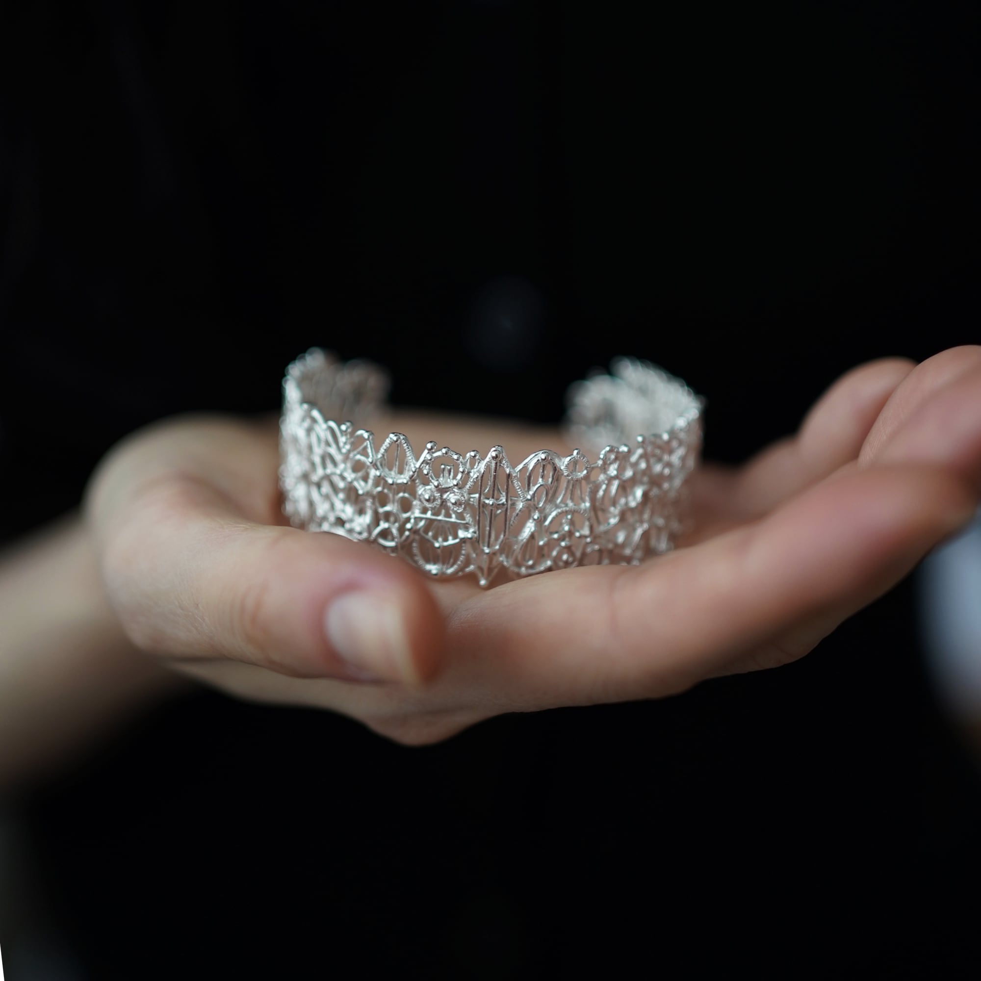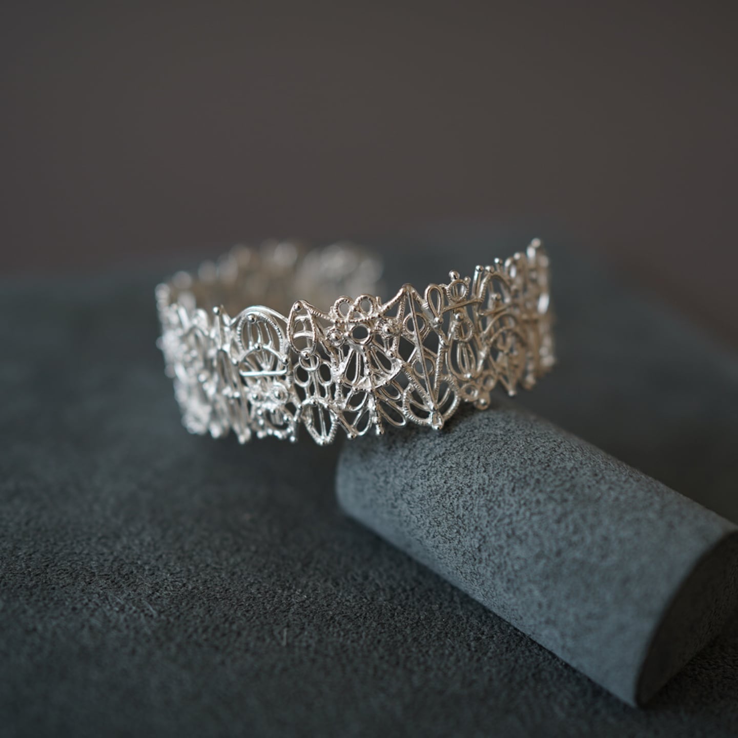 緻密なライン構成と透け感が上品なバングルに仕上がりました◎