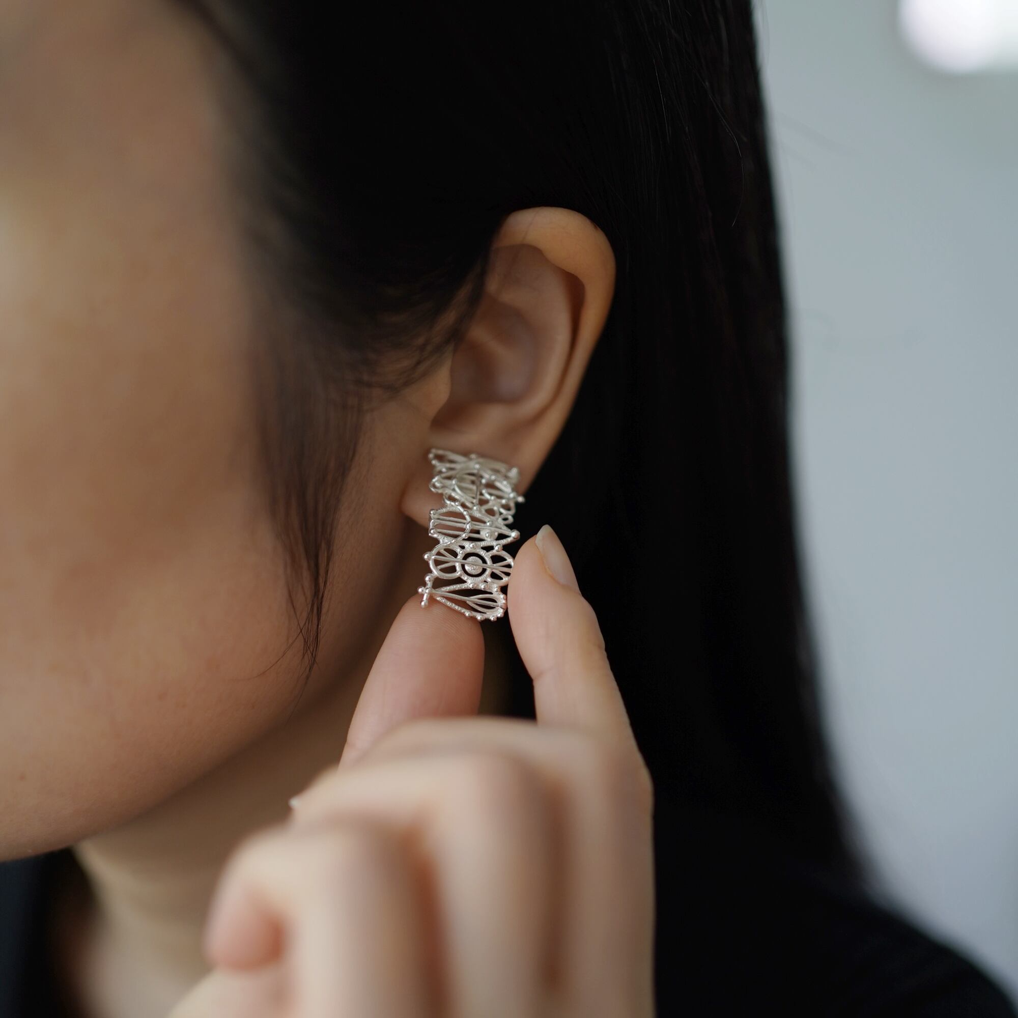 緻密なライン構成と透け感が上品なピアスに仕上がりました◎