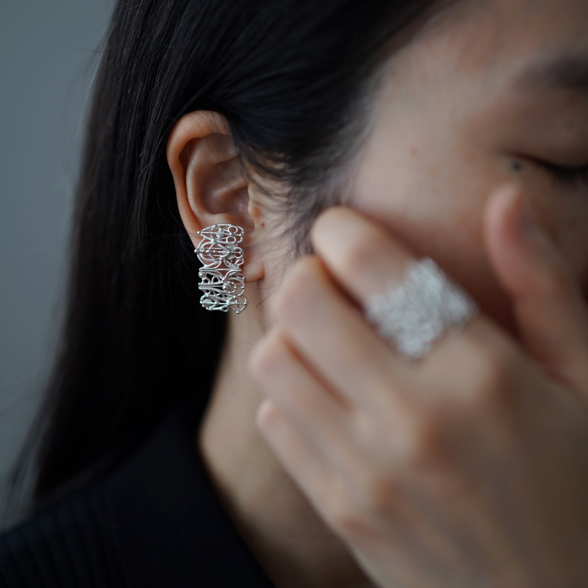 緻密なライン構成と透け感が上品なイヤリングに仕上がりました◎